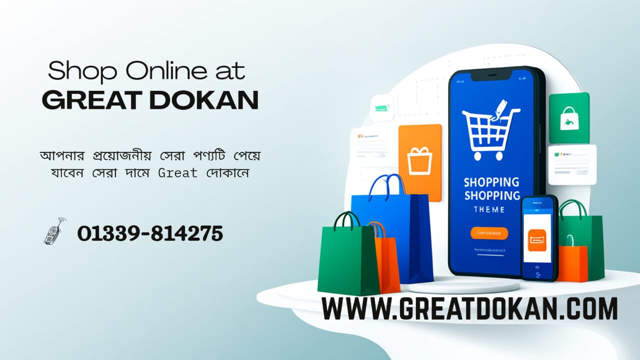 Great দোকান Online Shop এ আপনাকে স্বাগতম। বাংলাদেশের বিশ্বস্ত অনলাইন শপ। সারা দেশে ক্যাশ অন ডেলিভারি (৪৮ থেকে ৭২ ঘণ্টার মধ্যে নিশ্চিত ডেলিভারি) সকাল ১০ টা থেকে রাত ১০ পর্যন্ত। হট লাইন: 01339814275