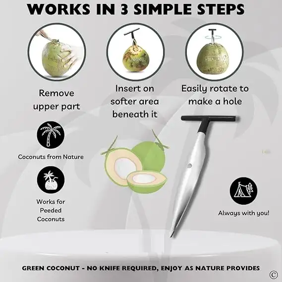 স্টেইনলেস স্টিল দিয়ে তৈরি স্মার্ট কোকোনাট ওপেনার—সেকেন্ডে পান করুন খাঁটি নারকেল পানি।